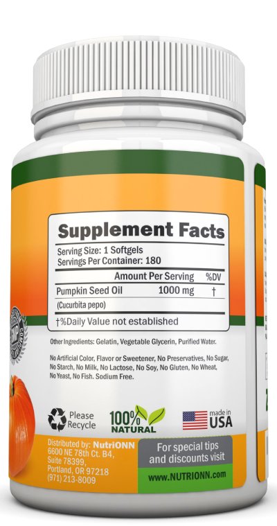 Pumpkin seed oil contains significant amount of antioxidants, magnesium and zinc. Magnesium is important for proper functioning of cardiovascular system and zinc takes care of prostate health. They are also a great source for plant based fatty acids, which are essential for human body and need to be obtained from food. Pumpkin seed oil is used to support cardiovascular and prostate health and to support urinary system.